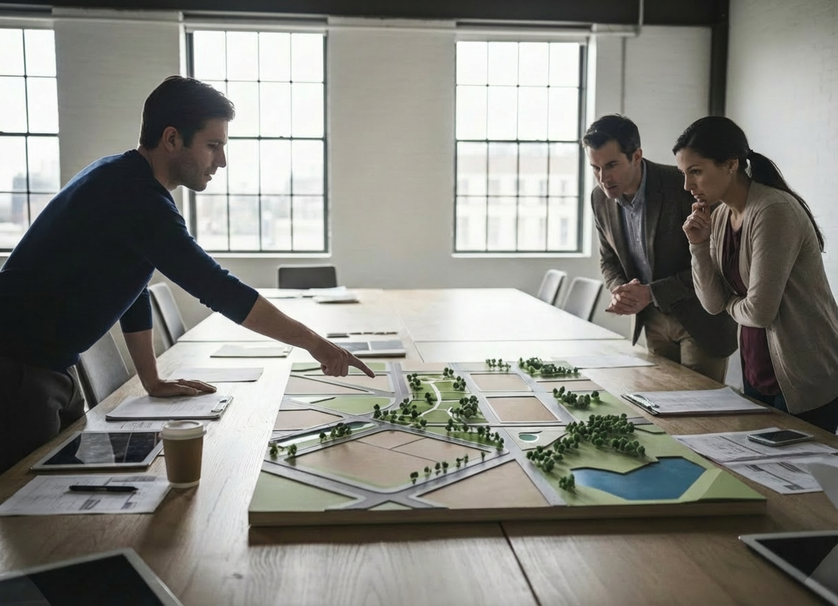 Diseñamos el masterplan, obtenemos aprobaciones municipales y coordinamos equipos técnicos para que tu campo se convierta en un barrio abierto o cerrado.